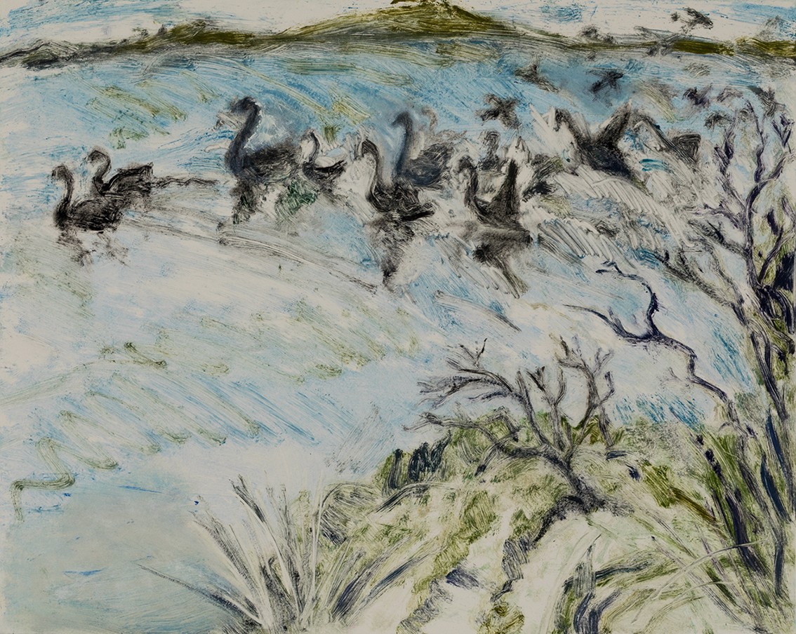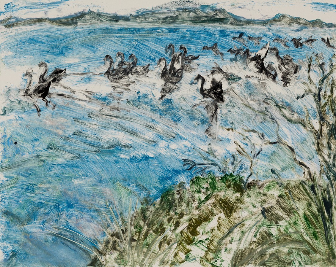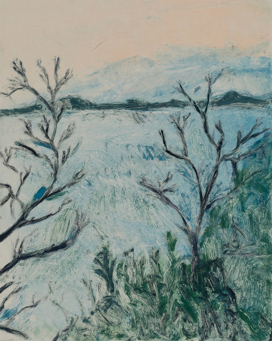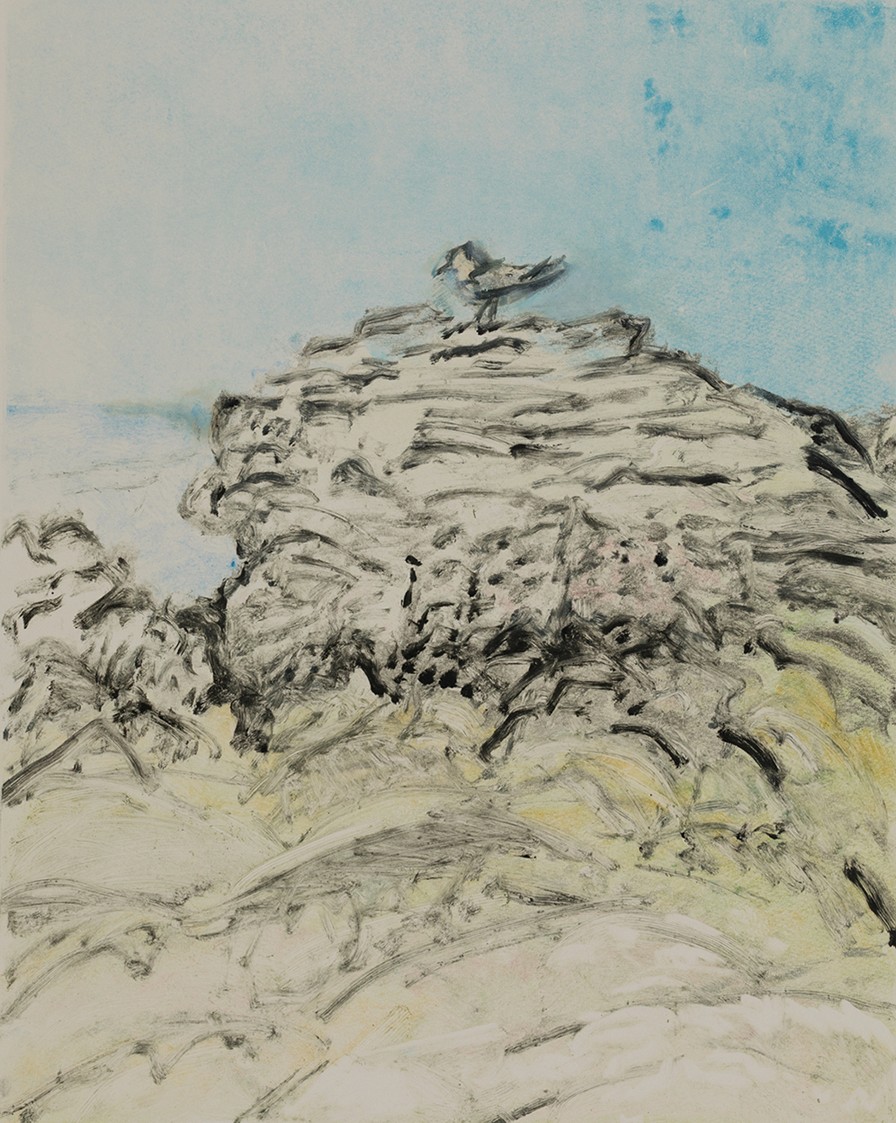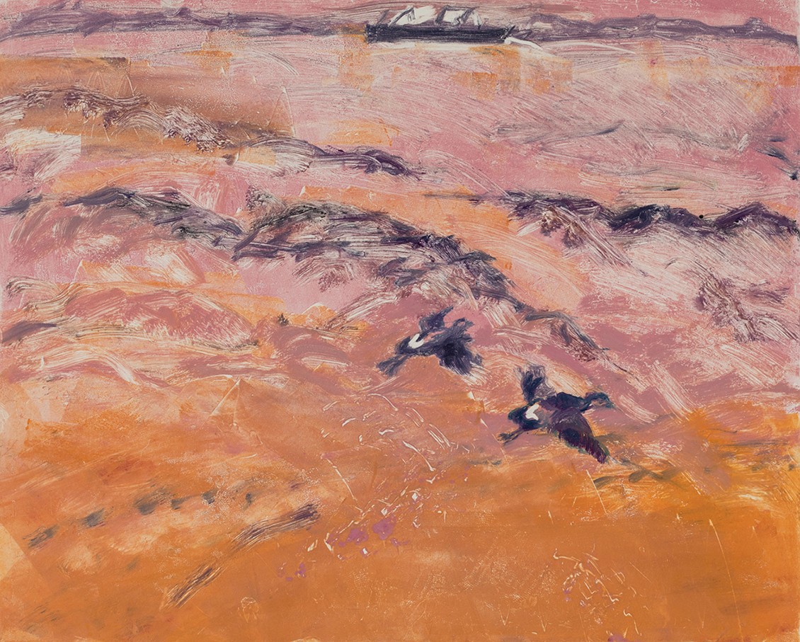 This series of monotypes is inspired by the landscape of Queenscliff and Point Lonsdale: its sea and sky, its trees, rocks, and wildlife, seen at different times of day and in different light.